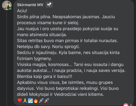 Dvejoji? Paklausyk dalyvių atvirų pasidalinimų iš praeitų retritų.